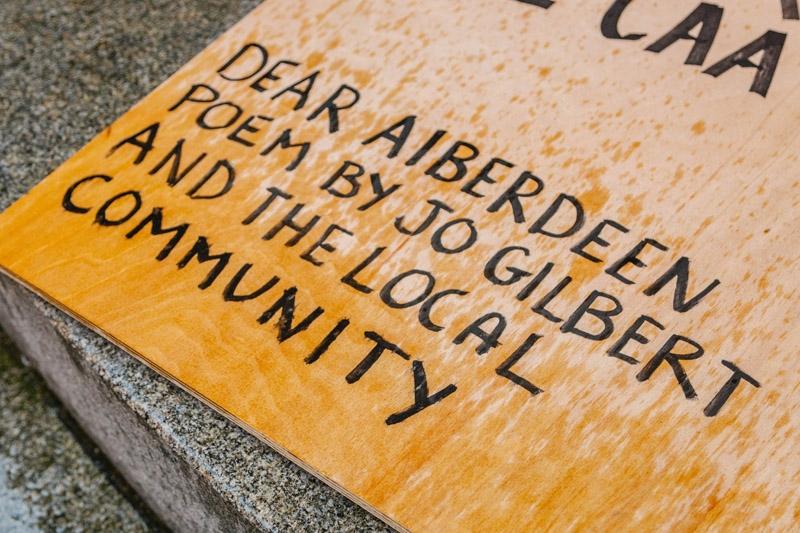 Morag has been working with Northeast-based poet Jo Gilbert, who has written new poems in Doric that are incorporated into the structure. Jo also collaborated with Aberdeen Multi Cultural Centre and these new works are powerfully emotional in their outpouring of love for the city. Love at First Sight provided the stage for a range of performances from the local Aberdeen spoken word, comedy and music scenes, curated by Jo Gilbert.